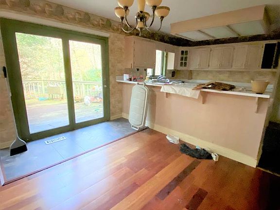 Single level home featuring 3 BR, 2 BA with attached garage. Circle driveway, level lot with wooded setting for added privacy. Large deck perfect for entertaining. Renovations needed, sold As Is.