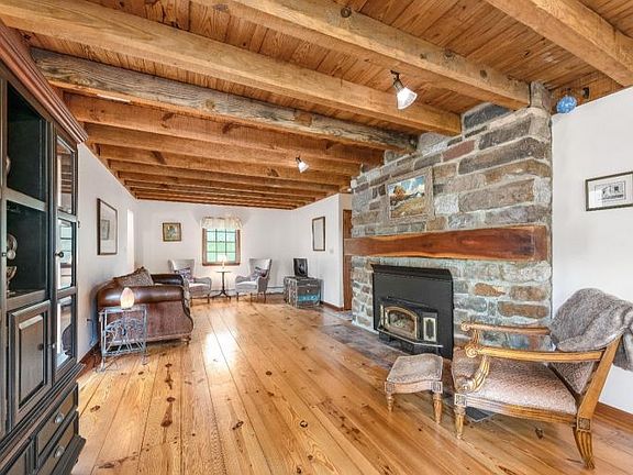 Charming Country Salt Box Colonial! Beautiful wide plank flooring, beamed ceilings and local stone fireplace! Gourmet Kit W Corian counter, wood cabinets and SS appliances. Master Suite on 1st floor with full bath and sunroom. Big Deck. Hardie Plank, low maintenance siding. 2 1 2 acre lot, offers privacy, backs up to trout stock Musconetcong river. Highly Accredited Schools. Convenient to stores, shops, fast food, fine dining, parks, hospital, train to NYC and Minutes to Newark Liberty Airport. A WONDERFUL PLACE!!!