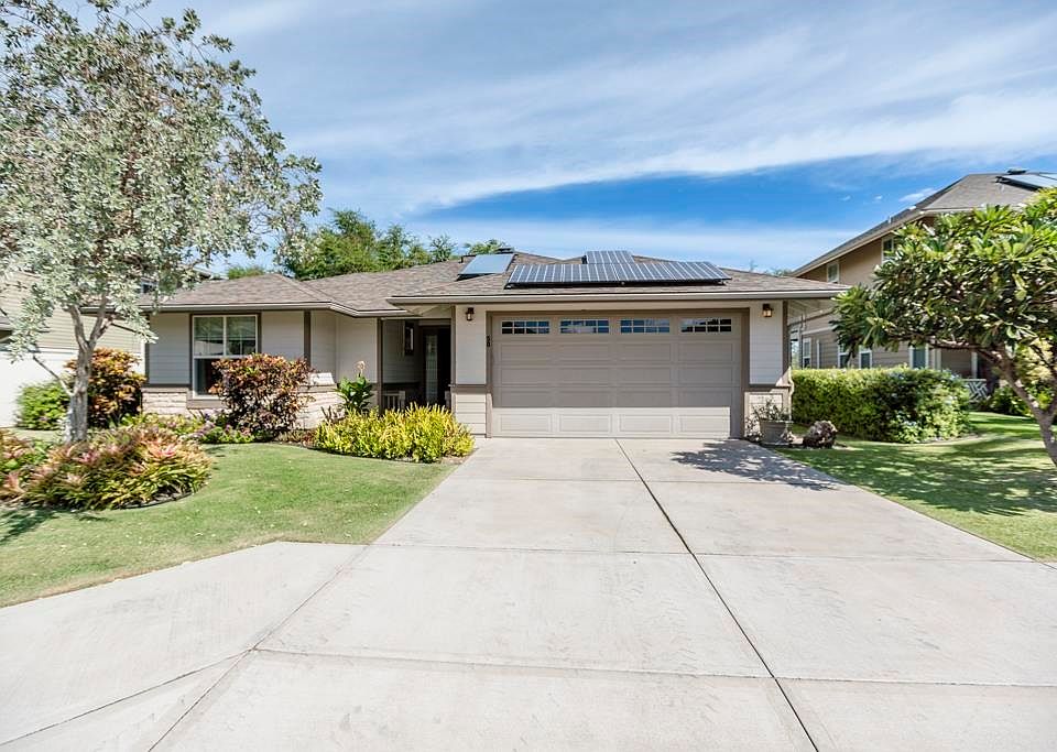 Welcome to 50 Olina Street - your Maui Lani Oasis. Experience the pinnacle of island living in this lovely single level home nestled within the prestigious Parkways at Maui Lani community. Embracing the serene backdrop of the lush Dunes at Maui Lani golf course, 50 Olina St is a beacon of comfort and luxury. This 3bd/2.5ba home boasts the popular Mauna Kea open concept floor plan, ensuring every inch of space is utilized to its fullest potential. 9 ft ceilings and custom 8 ft doors enhance the sense of space and elegance, while an abundance of windows bathes each room in natural light. Recently installed new appliances, new AC Handler in living rm and an advanced Sunbird Irrigation Controller system ensure state of the art living. A large kitchen island stands at the heart of the room, surrounded by spacious living areas that invite memorable gatherings. Stay cool and comfortable with a split AC system complemented by an 18 panel owned PV system with Net Metering to significantly reduce your electric bills. The private back lanai offers magical views of the West Maui Mountains, providing the perfect backdrop for relaxation or entertainment. A roomy three car garage provides generous space for vehicles and storage, fulfilling all your practical needs. Just minutes away from the airport, shopping centers, dining destinations, schools and medical facilities, the home's location combines convenience with tranquility. Your dream of island living awaits at this meticulously maintained sanctuary.