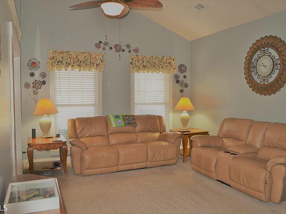 THIS HOME IS IMMACULATE AND MOVE IN READY in the sought after Orchard Park subdivision! Stone columns on the rocking chair front porch lead you to the front door of this attractive 3 BR/2 Bath ranch home. You then walk into a spacious foyer and living room where you can cuddle up next to the gas log fireplace and watch Netflix. The kitchen is very open with all stainless steel appliances, luxury vinyl plank flooring and a large pantry. Off the kitchen, you walk into the master bedroom that has vaulted ceiling with ceiling fan, master bath has garden tub and tile flooring. The other 2 bedrooms are perfect size for kids' bedrooms or an office. The detached 2 car garage is big enough for your vehicles and all of your tools.