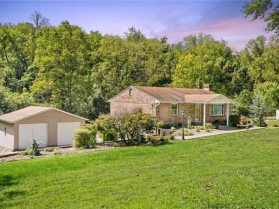 At last! Live your dream in this 3BR, 2 Bath Brick Ranch home on 1.5 acres in Carroll Township surrounded by mature trees & wooded views. The moment you arrive, take note of lush beautifully maintained landscaping & sidewalk leads you right to your front porch. Step inside to bright sunny living room w/updated flooring throughout. Kitchen is modernized w/ white cabinetry & boasts a magnificent large center island w/ seating. Main floor will also find peaceful nights & sweet dreams in each of the 3 bedrooms & updated main floor bath. Head downstairs & party like a rock star in the AMAZING game room with furnished theatre chairs, bar, bar stools, large bar mirror, fridge, pub tables & chairs! WOW! Also, on lower level, laundry room & full bath, & gorgeous stone fireplace. Head outside, you are going to LOVE the patio, back yard pool w/ slide, hot tub, outside bar, 2 sheds, large 2 car garage, & lots of parking! Home Warranty. Nearby Rt. 43, Rt. 136, less than 40 min. to Pittsburgh.