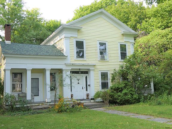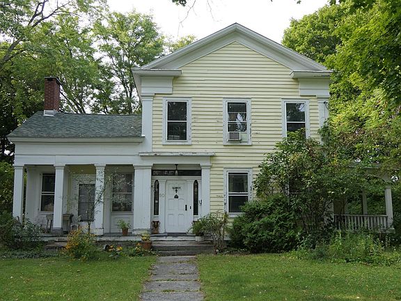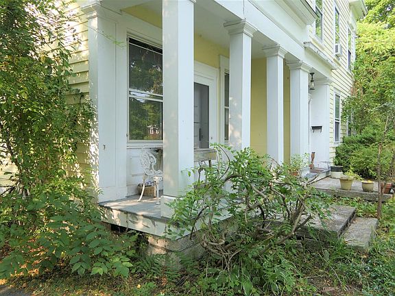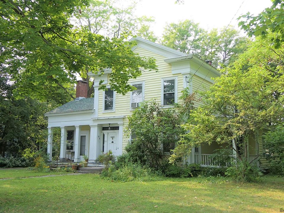 Darling three bedroom, two bath in the village of Canajoharie. This historic home was once the residence of Hon. David Spraker. From the side porch you enter a grand foyer with built in cabinets and exposed ceiling beams that continue into the living room. A formal living room, library with fireplace, kitchen, full bath and studio complete the first floor. Front and back staircases lead to the bedrooms and another full bath on the second floor. Off one of the bedrooms is a sleeping porch that reminds you of days gone by. On two-thirds of an acre, there are many mature trees and shrubs. Large barn is currently used as an artist studio with 220 electric.