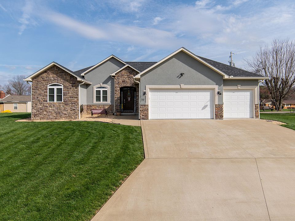 This beautiful, custom-built home located in London, Kentucky has been thoughtfully designed and constructed according to the homeowner's specifications. With an open floor plan that flows from the living room to the dining room and kitchen, leading out to the large covered deck, this house is perfect for entertaining and enjoying the spring and summer seasons. The kitchen has been designed with granite countertops, a stone backsplash, and Black Stainless Samsung appliances. The primary suite features a stunning ensuite bathroom with a double vanity, an oversized standalone bathtub, and a large tile shower with glass doors (plus a large walk-in closet!). You'll find two additional bedrooms split between a second full bathroom. Right off the entryway, there's a bonus room that could easily be converted into an additional fourth bedroom. This home also boasts a 720 sqft, three-car garage! Don't miss out on the chance to tour this stunning home today! Seller is offering a Home Warranty that is already in effect and will transfer to buyer at closing!