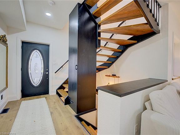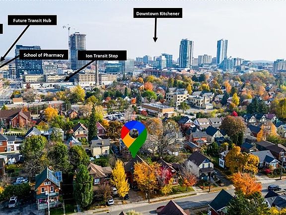Great income from this beautiful Century home ideally situated at the gates of Victoria Park, just a short stroll from Downtown Kitchener, the LRT Ion Stop, Google, the Tannery, the Pharmacy School, and the upcoming Transit Hub. As you enter, you’ll be greeted by an architectural marvel featuring an open riser (floating) wrap-around staircase, complemented by an abundance of built-in storage throughout. The home boasts new hardwood floors and natural wood windowsills, creating a warm and inviting atmosphere. The main floor is open-plan layout that seamlessly integrates the dining area, living room, and family room, alongside an eat-in kitchen. The kitchen is newly renovated with brand new stone counters, skirt sink, taps, appliances, and more. Patio doors lead you to a deck and patio, perfect for outdoor entertaining and relaxation. On the second level, a bright landing illuminated by a skylight opens to three well-sized bedrooms, each with built-in closets. Two of the bedrooms feature access to a large upper deck, providing stunning views of the evolving Kitchener skyline—ideal for morning coffee or evening wine. The fully renovated bathroom includes an oversized walk-in shower and a skylight for added brightness. The basement, accessible from both inside and via a charming covered patio at the back, has been thoughtfully renovated in 2022. It features a spacious living room, two bedrooms, a kitchen, and a bathroom, along with a small den and ample storage. Recently used as an Airbnb, this space offers great potential as a mortgage helper or a multi-generational living solution. The attic is a blank canvas awaiting your imagination, featuring newly installed floors and walls, and offering fantastic city views. Additional soundproofing was added in 2022 for enhanced comfort. Sitting on a generous 50-foot lot, this home presents endless possibilities, including the potential for a garage or tiny house. Past income was $3,040 on main level and $2,195 on lower level.