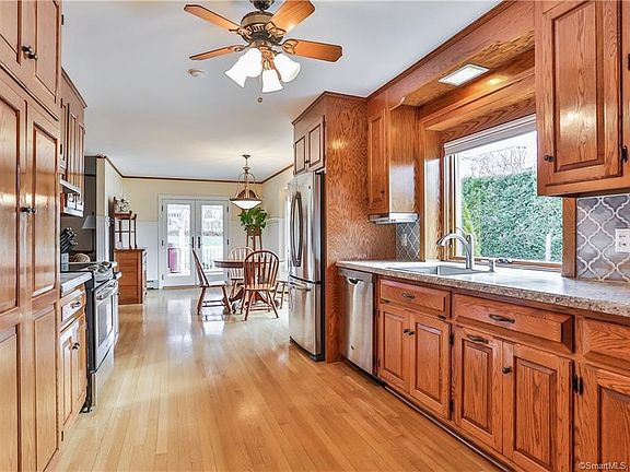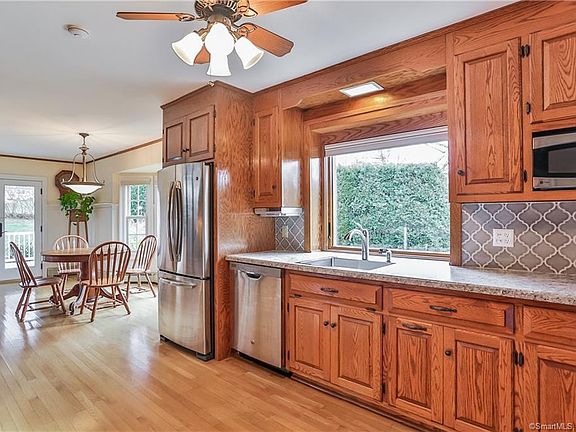 Not your traditional Cape. Open concept with 2500 square feet of living space. Impeccably maintained. Huge kitchen with built ins opens to inviting family room. Garden doors lead to deck and gazebo with hot tub. Pretty yard with lovely gardens and privacy hedge. Living room with gorgeous custom fireplace. Large formal dining room with stained glass windows. Sun room with gas fire place. 3 generous sized bedrooms/hardwood floors. There is an enormous master suite on the second floor which could be divided if more than 4 bedrooms needed. Great commuter location. Looking for something unique that can accommodate an extended family? This mint home would be a wonderful place to make your own.