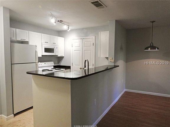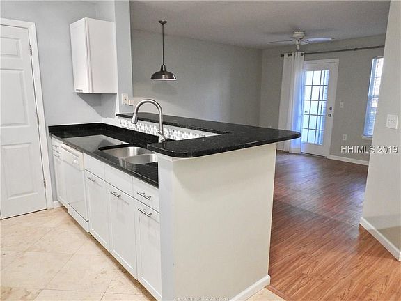 Spacious condo with open floor plan. Beautifully renovated with updated cabinets, granite counter tops throughout, Luxury Vinyl Plank floors in living room, dining area and bedroom, Travertine floors in kitchen, bathroom and laundry and smooth ceilings. HVAC REPLACED IN 2017 AND HOT WATER HEATER IN 2018. Building is at the back of the property and has a tranquil wooded view. Conveniently located in a gated community along Buckwalter Parkway close to churches, entertainment, retail and schools. Seller is related to a licensed SC Real Estate Agent.