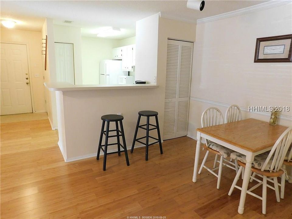 First Floor unit in the highly sought after Reserves at Woodbridge. This 2 bedroom 2 bath unit has new flooring in all area except the kitchen and bathrooms. Extra storage off the side porch and lots of closet space. Furnishings may be sold with the unit. Could be a great investment property.