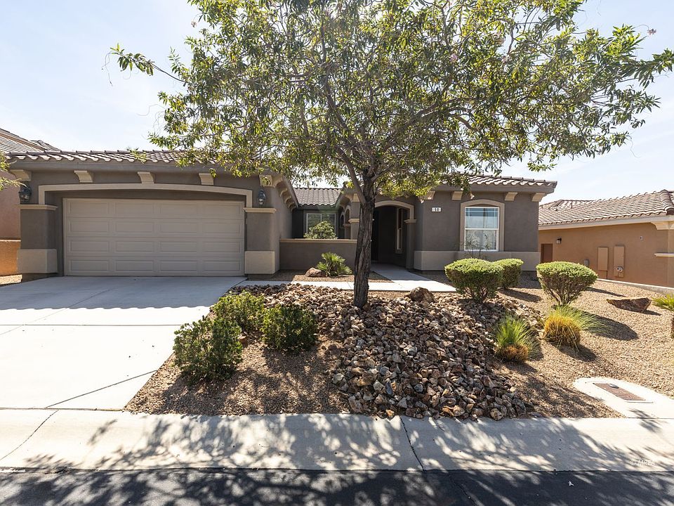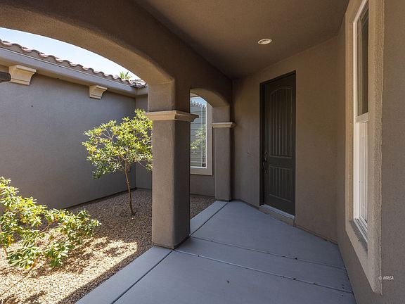 Located behind the first hole of the Oasis Canyons golf course, this home has one of the most pristine views in the City of Mesquite. Built in 2011, the home has been a vaction home for the original "snowbird" owners. The large back yard and extensive back porch provide for stunning mountain views and a variety of waterfowl enjoying the green-side lake. Enjoy the same stunning views through the two large windows in the great room. The spacious kitchen has beautiful granite countertops complemented by dark cabinets, stainless steel appliances and custom made wood blinds. Main bedroom sits off to the back of the home separate from the guest bed and bath. It sports a separate glass shower, soaking tub, dual vanities and a large walk-in closet. The den has a custom built Murphy bed and matching desk arrangement along with French doors. Just across from the den there is a formal dining area great for entertaining. Beautiful landscaping throughout the property including the front courtyard welcoming family and friends. Large 2 1/2 car tandem garage. Special note: Owners purchased additional yardage from the golf course to expand the back yard and added a supporting wall. All titled