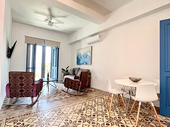 Welcome to Casa Pelayo! Be the first to live at this beautifully renovated Art Deco building of only 6 units. Located between Condado & Old San Juan in an up and coming urban development being transformed from what used to be a public housing area now benefited by the impact of a multimillion dollar investment renovation of the San Juan Bay residential front site. Fully furnished and equipped 1 bedroom & 1 bathroom apartment with its own private balcony!! Building has a a huge rooftop overlooking the ocean for the exclusive use of its residents. Washer and Dryer available in building. Off street parking. Fiber optic internet. Monthly Rent: $1,950 utilities included (water, internet and electricity). Available: Immediately. Private Showings: PR Real Estate Listings- A Smart Move!