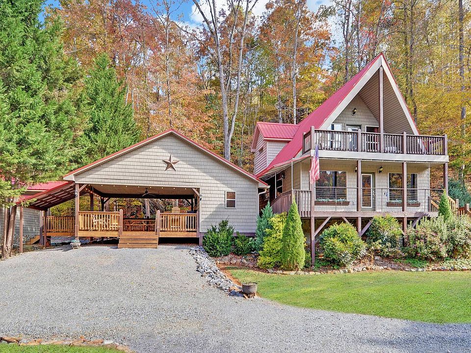 Discover the perfect blend of elegance and tranquility at this captivating chalet-style home nestled within a prestigious private gated entrance. Situated on a sprawling 2.42-acre ranch-style property, this residence boasts 2 bedrooms, 2.5 bathrooms, bonus room. Providing ample space for comfortable living. Step inside to find wood laminate floors that flow seamlessly throughout, complemented by stunning wood walls and a tongue and groove wood ceiling, creating a warm and inviting ambiance. The fireplace in the living room adds a touch of coziness, perfect for relaxing evenings at home. The modern kitchen is a chef's dream, equipped with top-of-the-line appliances and ample counter space. The master bedroom, a true retreat, features a private deck, offering a serene space to unwind. Outside, the front porch provides a picturesque view of the Hiwassee River, setting the stage for memorable moments. The property also features a separate covered outdoor bar and grill area, ideal for entertaining guests. Additionally, the 2-story, 26 x 30 oversized multi-functional garage includes ample space for tools and storage, with the upstairs transformed into an additional bonus room. A walking path leads into the woods, offering a peaceful escape into nature. Every detail has been carefully considered to create a home that is as functional as it is beautiful. Don't miss the opportunity to make this house your forever home. The home is to be sold fully furnished at the seller's discretion.
