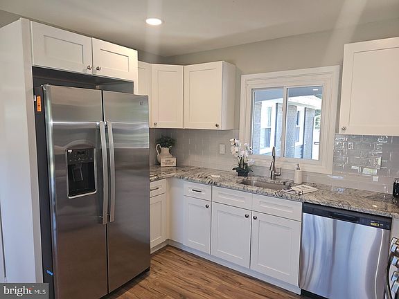 UPDATED & UPGRADED! This 3 bedroom, 2 full bath, L -shaped Ranch style home with a 1 car attached garage and an adorable front porch features a brand new kitchen equipped with New Kitchen Cabinetry, Brand New 4 piece Stainless Steel Appliances, Glass tile Backsplash and Granite Countertops! The 2 full bathrooms have been Upgraded with All New Bath Appliances, faucets, New tile, New lighting, New flooring, New Vanity, Sink& Mirror, etc. The crown molding and shadow box wood trim in the living room- A Touch of Class Plus plenty of space for a dedicated dining room or work from home space! The En Suite Master bedroom has its own private, full bathroom and extra storage/closet space. The spacious Eat In kitchen features a sliding door to the fenced backyard and backyard patio area-Great for entertaining or enjoying your morning coffee. NEW Flooring Throughout, Upgraded Lighting Throughout, New Paved Driveway, Fresh Paint Throughout, NEW ROOF, NEW HEATER,NEW AIR CONDITIONING,NEW HOT WATER HEATER,NEW GARAGE DOOR, New Interior doors and trim-Too Many Upgrades to Mention! All this with the luxury of First Floor Living ! *Waiver of Condition of Property to be signed at settlement *Taxes may be adjusted due to improvements *Solar is installed, to be transferred to the buyer