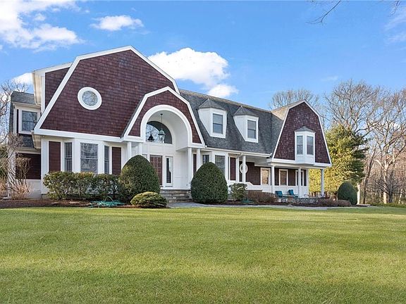 Gracious and spacious Nantucket Shingle-Stlyle Gambrel Colonial is set on 2 manicured acres. Ornate details and character throughout make for a cozy feel in this 6,000 plus sq ft home. This light and bright home has terrific flow! Discover a chef's kitchen with Bird's Eye Maple cabinetry, center island and dining area. The stone fireplaced Great room with a hand hewn beamed cathedral ceiling overlooks the back yard and in-ground salt-water pool. There are ten spacious rooms including 5 bedrooms, 5 baths and 2 lavettes that are just right for family and guests alike. A separate laundry room is on the main level and just off the kitchen. The mahogany paneled office with fireplace is also on the main level and is perfect for working from home. The grand staircase leads from the foyer to the second level of this home. The luxurious primary en suite includes a soothing bath with double vanities, heated floors, XL walk-in shower and whirlpool bath. The lower level includes a rec room and lots of additional storage. The three-car, side-load, garage is ideal. The fenced back yard and landscaped grounds are perfect for summer entertaining. Central A/C, natural gas, County water and a whole house generator make for care-free living. Just a short drive to downtown EG for great dining & shopping. Easy access to 95 N&S. Top rated schools. This is the one to buy!