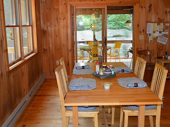 Move in Ready. Furnished Crystal Pond ,4 acres 2 or 3 bedrooms 2 bath. very private. No neighbors. All completely open living area with screened in porch and large deck. Master and 2nd bedroom upstairs with Fun big Jacuzzi tub After skiing delight. Walk in shower and double sinks. Beautiful polished wood floors , Fireplace in living room, Wood stove in lower level. Cut walking trails. Pond is around the corner for kayaking . Large open kitchen. Used both for winter skiing and Tanglewood summer concerts. Seller had the home designed and built for both summer and winter fun. Well maintained.. Crystal pond is a small well kept group of 16 homes .