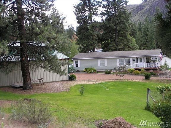 Wonderful floor plan, stainless appliances, ramp, steps to home and covered deck. 3 bed/2 full bath home on .50 ac. Master suite with garden tub and walk in shower. Living & dining room have lots of windows. Has triple car garage/shop and single garage. Fenced garden area. Red gravel driveway, concrete walks. Great location,good access and across from community park area. All appliances stay.
