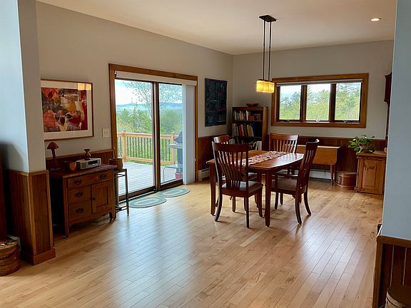 Custom home, recently constructed and situated on approximately 37 acres. Very private, southern exposure, Mt. Sunapee views and close to all area amenities. The open design is very bright and 9' ceilings give an airy feel. The eat in Kitchen has a large butcher block island, Candlelight Red Birch cabinets, quartz counter tops, a separate prep sink, mini refrigerator, stainless steel vent hood and pantry. The Dining Room has wainscoting and access to the deck, a specious Living Room with vaulted ceiling, pellet stove, ceiling fan and mini split AC, the Master BR includes a mini split AC and walk in closet and bath that has tile shower, tile floor and quartz vanity top. The lower level features; a spacious family room, slider to outside and wood stove. Guest BR, full bath and spacious mechanical room & lots of storage. Other features: solar panels, HW flooring, R60 ceiling insulation, Pella Windows & ext. doors and ext. building shell vinyl & composite materials - very low maintenance costs.