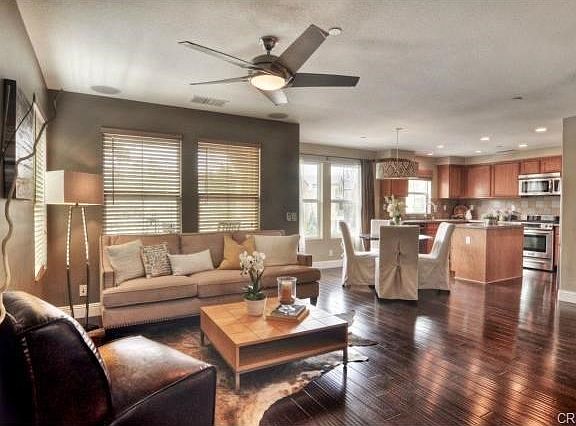 Turnkey Sutter's Mill Townhome featuring dual master suites and a loft that can be converted to a bedroom, play room or an office. Custom carpet and hardwood floors greet you upon entry. No one above or below you. Large bright windows fill the spacious family room with media niche, including cozy fireplace. Perfect for entertaining or just relaxing. Upgraded kitchen with Caesar stone counter stops, backsplash, stainless steel appliance, large center island, and ample storage space. Door leads out to the private balcony with room to BBQ or enjoy your morning coffee. Second level, along with the half bathroom, also comes with a separate laundry area. Dual master bedrooms with en-suite bathrooms, ceiling fans, and custom window coverings, are located on the third level. Master bedroom features a walk in closet with plenty of room. Two car tandem attached garage and cul de sac location complete the wonderful home. Short distance to Celestial Plunge Pool, Ladera Ranch Water Park, and large covered tot-lot playground. Ladera Ranch amenities include high speed internet, award winning schools, 12 pools, 5 clubhouses, tennis, water parks, skate park, dog park, community events, miles of biking & hiking trails.
