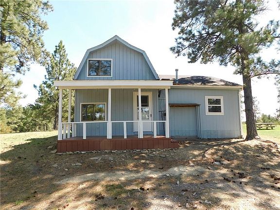 Spectacular Views from many places on this 80 acres of gorgeous land mixed with trees, hills with grass, flowers and again VIEWS! 2 houses, 1 is remodeled with brand new carpet, woodstove in the dining and updated kitchen area and a pellet stove in the large living room with a covered deck on each side to enjoy the fresh air and watching the sun rise and set! Large picture window. New paint, new carpet. 3 Bedrooms, 1 Bath, metal roof. 2nd house has some updates and includes a kitchen, bathroom, bedroom, woodstove, and attic space. Shed for storage, horse shed, and small workshop. Abundant wildlife for you hunters, to include, deer, elk, turkeys. Or maybe your bird watchers. Many types of birds. Information per CH records.