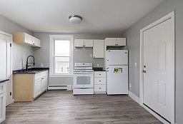 Fully renovated 4 bedroom 1 bathroom 2nd floor apartment. This spacious apartment is perfect for a family or couple with the need for office space. The main floor features kitchen and living or dining room open floor plan. New sink, cabinets, refrigerator, and granite countertops. This floor also includes two bedrooms and a bathroom with full shower. There is a laundry hook up ready to take washer and dryer combined with some bonus space for storage or laundry use. The second floor has 2 charming bedrooms with a window each that allow for a cozy and practical space for bedroom or office. New windows highlight the natural light that brightens the main area during the day. There is new laminated flooring throughout the main floor, and fresh carpeting up the stairs and into the upper bedrooms. Off street parking for 2 cars, access to front fenced in yard and back yard. Entry through the front door or up a side stair entrance right into the kitchen.