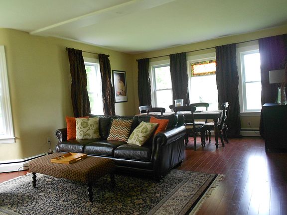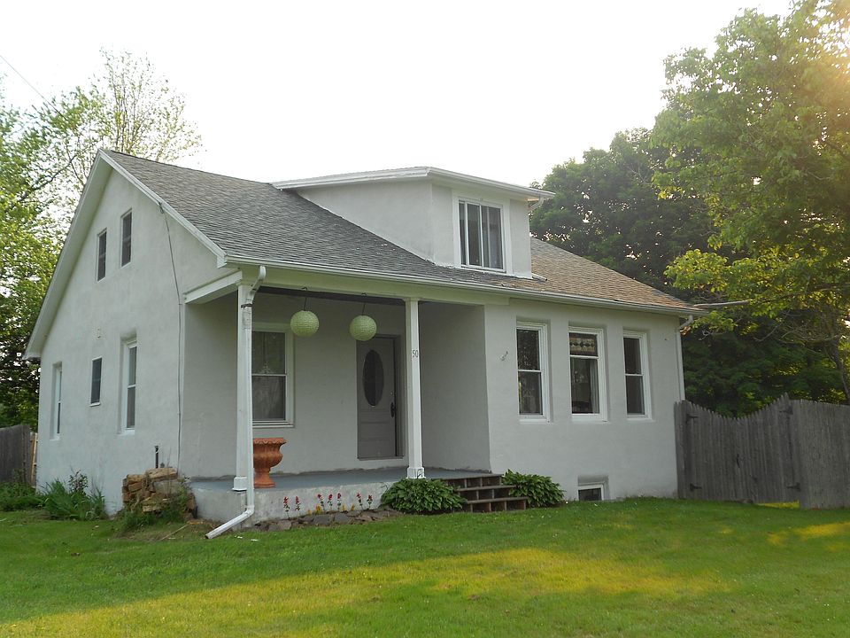So much space and light and character!! This stucco bungalow is only 1.5 miles from Mount Holyoke College! Lovated around the corner from "5 Corners", this home has nice street presence with a great yard and a HUGE oversized garage. The living room/dining room combination has new bamboo flooring. The country kitchen has great cooking space and gas stove and stainless steel dishwasher and refrigerator. There are 2 bedrooms and a full bath on the first floor (one bedroom is being used as a TV room). The second floor features a reading nook and 2 large bedrooms with built ins and a walk in closet! Nice little front porch and enclosed back porch! Ample, fenced backyard with above ground pool and storage shed and a nice, flat driveway with turnaround area. The HUGE Garage!!! has oversized doors and room for 4 cars or a workshop or work trucks! Newer roof and windows and gas heat! Town sewer and private water systems. Make an OFFER!!