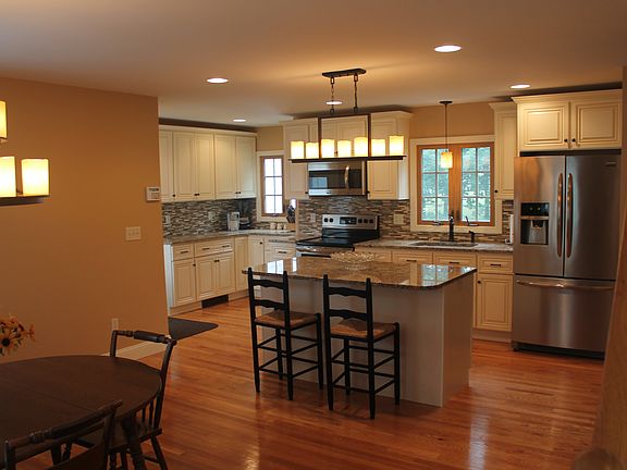 Move right in to this beautifully renovated cape style home just minutes from town amenities, schools, and highway access. Large and stunning remodeled eat in kitchen with open floor plan, granite counters, new beautiful cabinets, stainless steel appliances, plenty of counter space, and recessed lighting make it great for entertaining your friends and family. Gleaming wood floors meet you in every room of this 3 bed 2 bath home. The kitchen and dining space leads to a large living room with field stone fireplace and French doors leading to a 3 season room. First floor is complete with a renovated full bath. Upstairs you will find 3 bedrooms, a renovated full bath, and a cedar lined closet. Home features many upgrades with 2014/2015 renovations including new windows, doors, kitchen, 2 new baths, flooring, paint, and updated electrical just to name a few. Want more? This home also sits on a double lot leaving you with extra privacy and tons of space and potential to make the yard of your dreams.