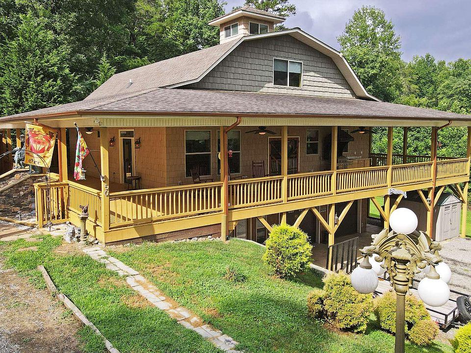 Pack your jammies and toothbrush this 3BR/3.5BA home is furnished and ready to move in and, while you'll think you're in a peaceful remote location, you're just minutes from town and convenient to shopping, restaurants and more! Your new home features a 4-sided wrap around porch giving you tons of room to enjoy the outdoors. Inside you'll enjoy soaring cathedral ceilings and the most incredible chefs kitchen with igranite countertops, hickory cabinets, as well as a gas stove and commercial-style refrigerator/freezer. You'll also find a pantry, coat closet and laundry closet in the kitchen area. Three master suites give you, your family and/or guests lots of privacy - there are two on the main and one upstairs! The finished terrace level features a living room, complete second kitchen, bedroom, full bath and 2 car garage and the detached 2 car garage makes a great man cave. Well maintained with tons of room inside and out, this sweet property won't last long!