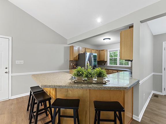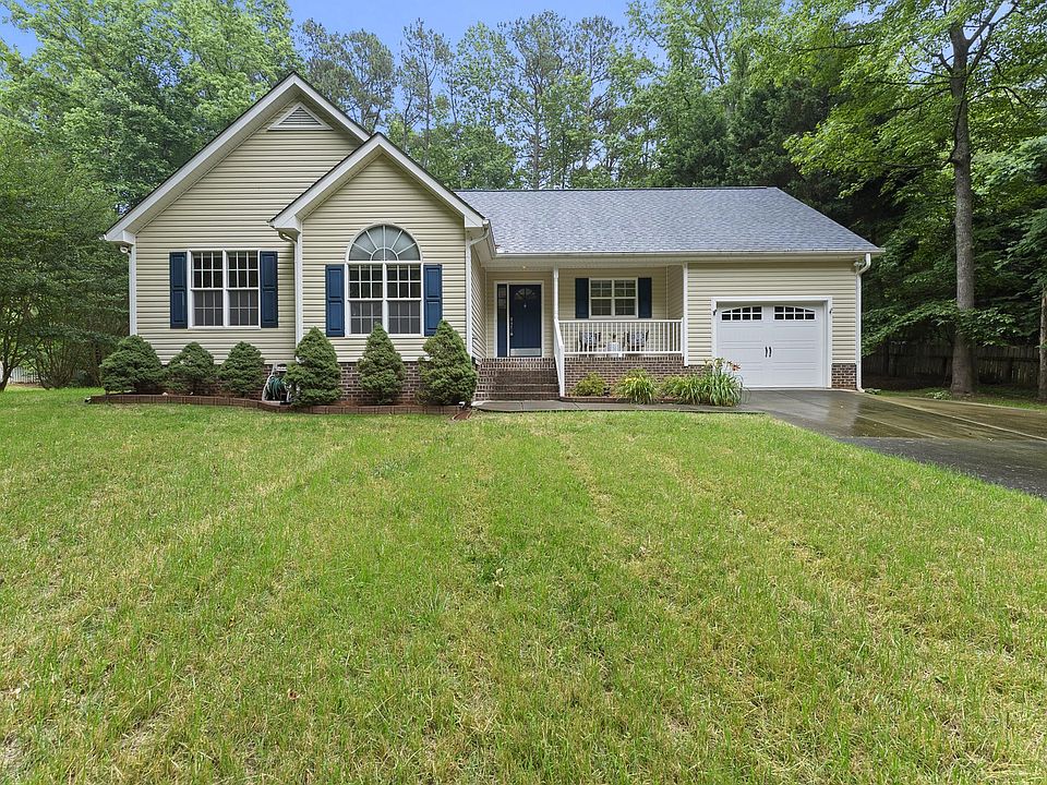 This cul-de-sac charmer is completely move-in ready with new LVP flooring throughout, fresh interior paint, and updated appliances. The interior charm beckons you, but the large private yard with hardwood trees keeps you here. The 1-car garage and driveway parking pad give plenty of space for your vehicles while the storage area at the back of the garage gives you work or storage space. The sealed crawlspace with a dehumidifier, generator hook-up, gutters with leaf guards, MASSIVE walk-in main closet, and storage building are the icing on this charming cake. Kitchen refrigerator, fire pit, fire pit chairs, pergola, and hot tub all convey. Security cameras in use on the property.