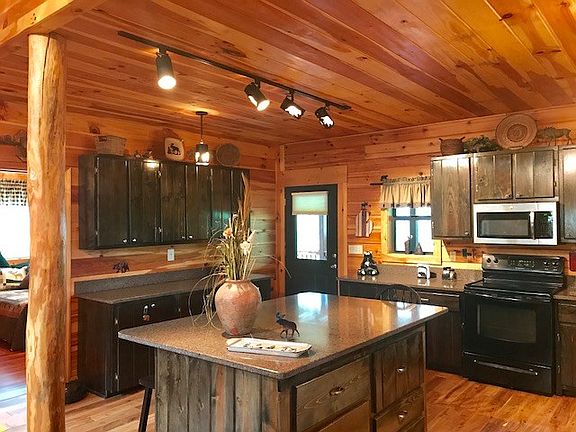 Proud owners live & enjoy this immaculate 3 BR / 3.5 BA log beauty. Wood floors, walls & ceilings make this one pop. Stunning kitchen w/all the perks a cook will love! 3 MASTER BR SUITES....one on each floor for total privacy. Need extra room & storage?No problem! This has just under 3,000 sq ft of comfortable living space. The basement is finished & home to a family room w/ gas logs plus a spacious office that leads to the lower level porch equipped w/ a hot tub. 2 car garage is detached yet just a few steps from the house entry. The OUTDOOR SPACE IS AMAZING w/covered porches & decks on each level. Little yard maintenance so you can spend your time out back enjoying the 2 Koi ponds.