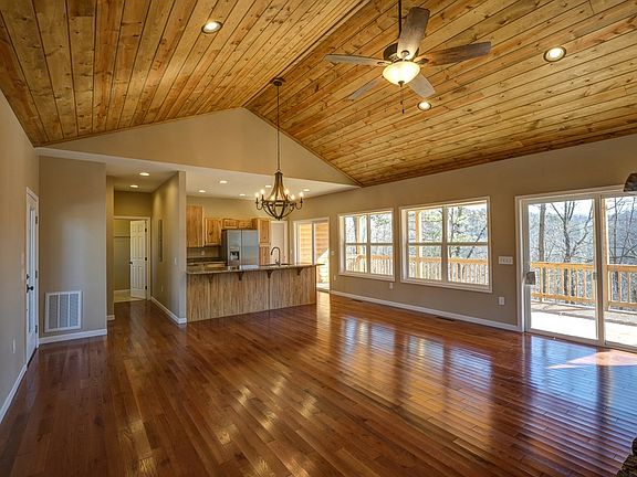BRAND NEW 3 bedroom, 2.5 bath home on ONE LEVEL! Located in gated Valley River Vista, you ve got access to the community area on the River and paved roads. Log sided home has a gourmet kitchen with granite, new SS appliances, plenty of cabinets, and huge breakfast bar. Your Great Room has vaulted wood ceiling, hardwood floors, rock fireplace that will warm the North Carolina evenings. Large windows let plenty of light in making the open floor plan perfect. Spacious Master Suite with dual vanities and granite tops. Guests have their choice of bedrooms, a full bath, and a half! A large porch complete with ceiling fans makes it the perfect spot to relax and enjoy lifes pleasures. Welcome home!