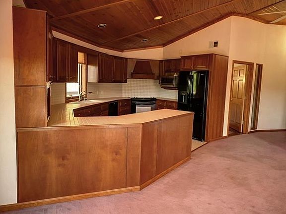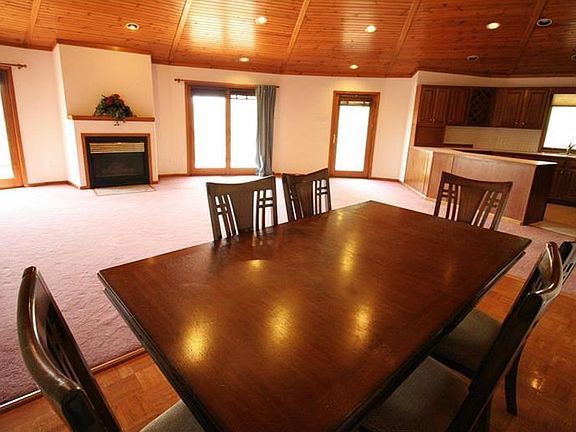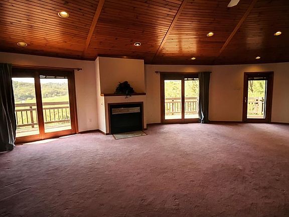 Unique and different. This round home sits atop a hill of six beautiful acres. Gleaming hardwood floors, three generous bedrooms, extra room on lower lever could be office or fourth bedroom. All kitchen appliances stay. Also included with sale, is the beautiful seven piece dining set, and fish tank in lower level.
