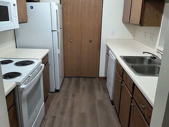 Our bright and cheery, 1,100 square feet, 3-bedroom units offer ample closet space, soft water, and bathroom with double vanity. Resident's love our units for the full kitchen with dining area and ceiling fan, large pantry, built-in microwave and dishwasher, and kitchen cabinets galore!