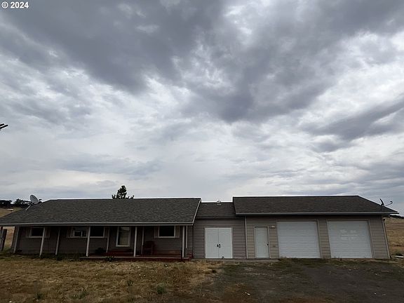 REDUCED LISTING PRICE! Very nice private 20 acres, with a beautiful view of Mt Hood. Some trees, a circular drive way, with a spacious 2002, 2350 sq ft manufactured home, as well as a 70'x40'pole building, with elctricity/water make this a bargain you don't want to miss. The possibilities are endless! Seller is offering $2000 concession to buyer, at closing, for removal of items in 2 sections of outbuilding. The MH has had 2 permitted additions since 2003: dining/great room; 2 car garage with attached breezeway and storage area. Low maintenance fenced back yard area and dog run. Large gazebo on NW side of house. Come experience the quiet!