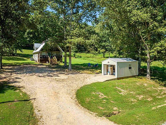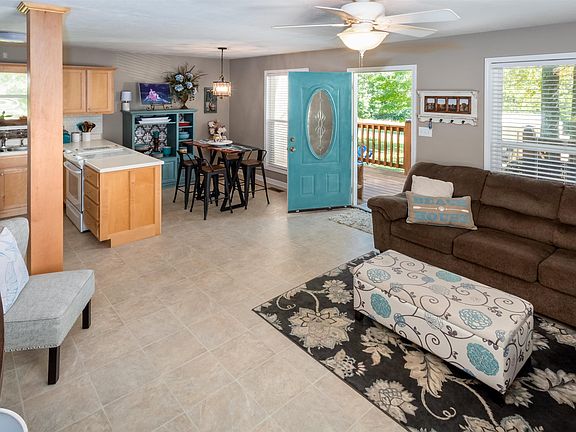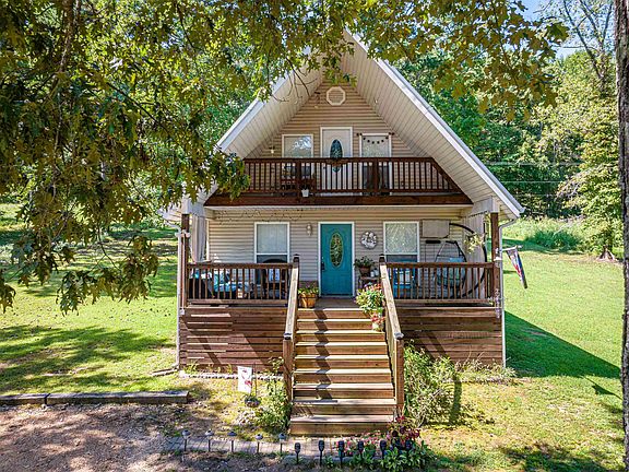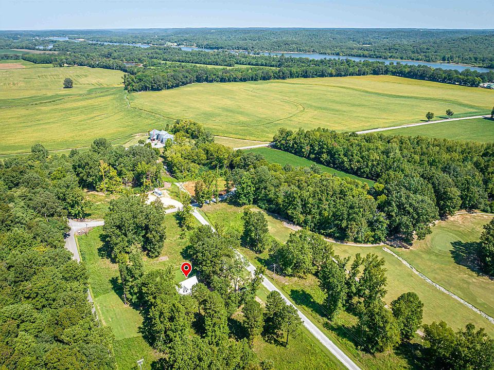 TN River Living out of flood plain!!! Nestled in the trees overlooking hole #16 of the Tennessee River Golf Course w/ FIBER INTERNET!! This cute & furnished home awaits new owners! Enter through the 10 x 30 covered front porch complete with furniture, mounted T.V. & views! Open living w/fireplace, furnished kitchen, dining-pantry closet. BR on the main floor w/full bath featuring washer/dryer. Upstairs is 2 BRS w/ front BR featuring a private balcony. 2nd BA features tiled shower & pretty barn door. Outdoors you will find plenty of places to gather-from the firepit sitting area, covered front porch, to the grilling patio off the detached garage. Golf is across the road, 2 boat ramps nearby to launch your boat. Mermaid Marina, & TN River Marina also at resort. Bring the boat, your golf clubs and the Kids! Fun and adventures await! Golf Cart & Mower also included!
