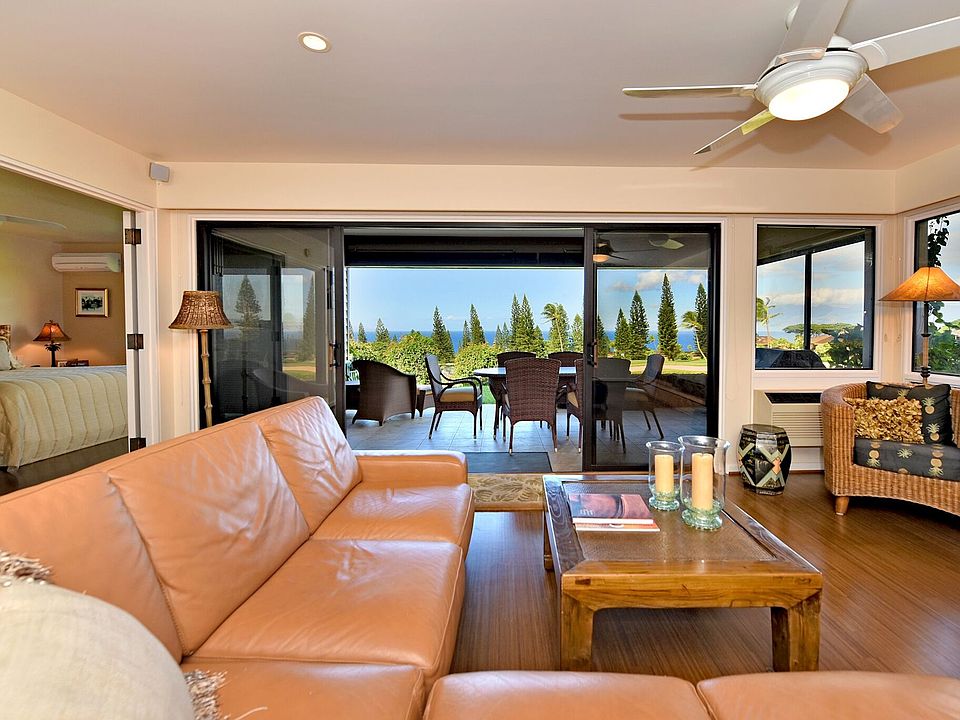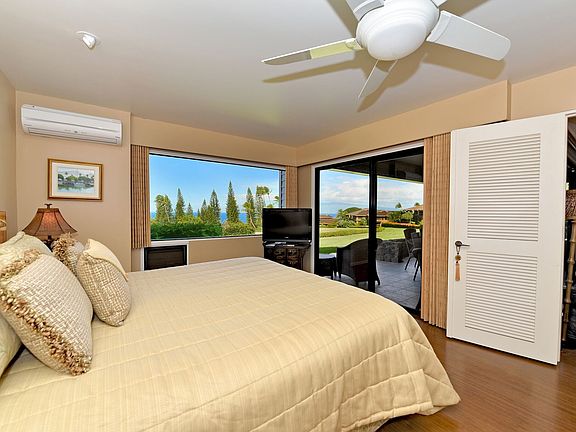 One of the nicest corner two-bedroom suites at The Masters, with spectacular ocean and island views, overlooking the ninth-hole green. Expansive lanai offers privacy from neighbors. Being sold TOTALLY TURN-KEY. Completely remodeled with amazing amenities, including tri-zone interior air-conditioning system; dark-stained bamboo floors; space-saving built-in dressers and desk; additional storage closets; beautiful granite kitchen and bathroom counter tops; new foyer and lanai ceramic tile floors; and contemporary, comfortable furniture throughout. Other items provided include: three flat-screen TVs, two printers, complete kitchenware, linens, beach items, wall art, etc.