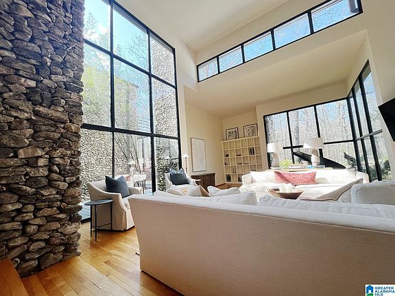 Truly a statement home! Situated in the east side of Anniston, minutes from Donoho school, this 4 bed, 3 & a 1/2 bath home sits on almost 6 wooded acres. The home features several covered porch breezeways, an open back deck, in ground pool, & mature landscaping. Inside you will be greeted by soaring ceilings, windows upon windows to let in tons of natural light, and gleaming hardwood floors. The formal dining room overlooks the pool & backyard, and the exquisite kitchen offers a pantry, built in wine rack, high end appliances, as well as a cozy breakfast space. Upstairs is the master suite, with access to the front balcony. Master bath features separate vanities, his and hers closets, soaking tub, rain shower & heated floor. There is also space for a dressing room! The basement would make an excellent space for teens. Wine cellar, irrigation system and landscape lighting are just a few of the deluxe amenities offered at this amazing home! Property offers a hiking trail & camping area.