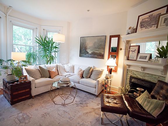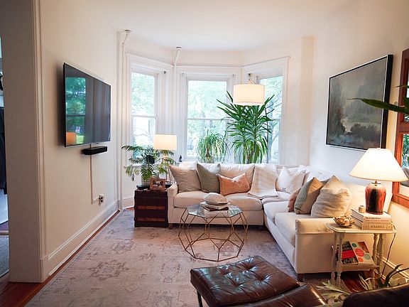 Full single-family townhouse on one of the best blocks in Bloomingdale. Designed by Washington DC architect Kendall Dorman, this modern take on an 1890's townhouse offers eye-catching features such as a two-story skylight and high ceilings that make the home light and airy. Great entertaining space with chef's kitchen front and center. Huge south-facing patio plus gated off-street parking with a new roll-up garage door. Additional recent improvements include new appliances, solar panels, outdoor benches, and new built-in closets for added storage. The property features two bedrooms, two bathrooms, an unfinished basement (not pictured and excluded from square footage excellent for storage, workout area, and equipped with utility sink and full size second refrigerator), washer/dryer in large closet with additional storage (not pictured), secure parking with outlet for EV charging, loving landscaping, outdoor deck and patio, and a built-in desk/work space. The location is on a quiet, tree-lined street, perfectly situated in the middle of the block. It is 1.5 blocks away from Big Bear and the year-round Sunday Bloomingdale farmers market, 2.5 blocks from Red Hen and other shops and restaurants on 1st street, 3.5 blocks from the Metropolitan branch trail, and less than 1 mile from the new Reservoir Park and incoming grocery store. Excellent walk, bike, and transit scores served by five bus lines within 0.5-2 blocks (G8, 80, 90, 92, P6) and 0.7 miles to NoMa Red Line Metro station. It is 0.7 miles to Union Market, 0.8 miles to U Street Corridor, and 1 mile to the 14th Street Corridor. Note: Second bedroom pictured both as a bedroom and nursery. 1-2 year lease term available. Tenant responsible for all utilities but rooftop solar panels keep electric bills very low. Pets allowed for additional maintenance/cleaning fee.