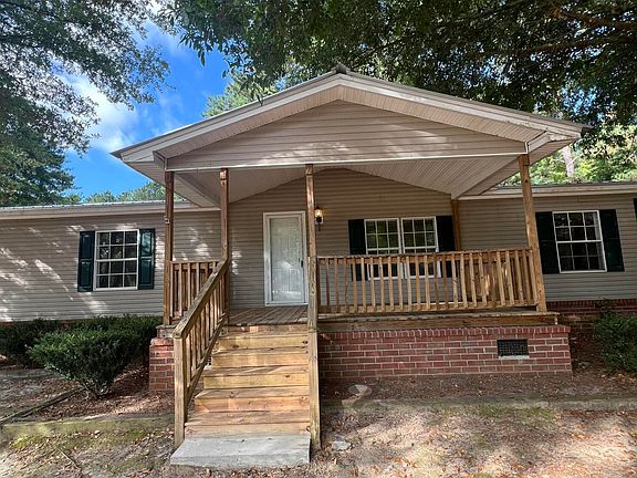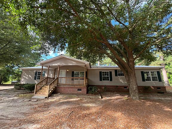 Situated under the majestic Live Oaks, move-in ready 3 bedroom, 2 bath home on a spacious 1.4 acre lot with open floor plan is ready to be called home! Crown molding throughout, wood burning fireplace in the living room, vaulted ceiling, new carpet & ceiling fans in the bedrooms - ALL with walk-in closets. Primary bedroom has two vanities, soaking tub and stand-alone shower. Plenty of cabinetry and countertop space in the eat-in kitchen with island and additional dining space. Bonus room could be used as an office, playroom or extra bedroom if needed.New roof in 2024, this bricked-in double-wide offers plenty of parking for multiple vehicles and entertaining outside on both front and back porches. Utility room with washer & dryer hook-up. This property has so much to offer and of course No HOA - private setting and close to town!