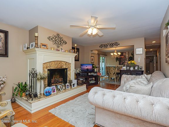 Welcome to this charming custom ranch style home in the heart of Eltingville. This is definitely not your ordinary ranch. As you step inside, you're greeted by a spacious living room with a custom wood burning fireplace and a ceiling fan perfect for relaxing. The formal dining room is perfect for entertaining guests. There are hardwood floors throughout home. The adjacent kitchen features modern appliances, ample cabinet space, and a cozy dining area.