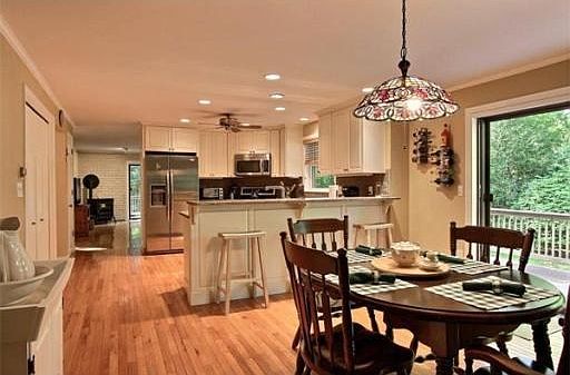 Sparkling West Falmouth Cape with gleaming hardwood floors, large kitchen/dining area with granite counters and stainless appliances, living room with vaulted ceiling, family room with stove and sliders to large backyard deck, large master suite, and two car garage. Close to beaches and more!