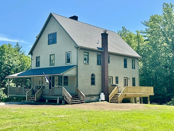 If privacy is what you seek, this place might just be for you, over 14 acres of it. A long driveway leads to a clearing that's perfect for horses, chickens, gardens, etc. The home is perched high, featuring a wrap-around Farmer's Porch and a 24-foot deck at the back. The spacious Kitchen-Dining Room is beamed with an arched Fireplace, offering a Farmhouse ambiance. French Doors open to an 18 x 17 Living Room with hardwood floors. On this level, there's also a full bath and an Office that could serve as a fourth Bedroom. Dual oak staircases ascend to the second floor, where the expansive Front to Back Main Bedroom with a second fireplace awaits. The other two bedrooms each boast their own half bath and share a common shower room. The convenience of second-floor laundry is a plus. A walk-up attic staircase reveals a full-height space with potential for future living area development. The walk-out Lower Level features a half bath, bar, and TV area. Many items will be offered for sale