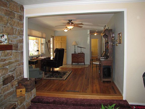 Prime location, rare opportunity! Seldom do homes on Rio Vista Circle come to market. This is a quiet, non- thoroughfare street in close proximity to river trail, Animas put-in, Riverview Elementary, Durango High, Rec Center, etc. The house features 4 total bedrooms with the master bedroom currently a lock-off ideal for mother-in-law suite or college student. Bathrooms have been updated; two living areas; hardwood floors; newer kitchen appliances, furnace, hot water heater, and evaporative cooler. Mature landscaping and beautiful, terraced backyard. Cozy patio features a water fountain and pad with hot tub wiring. Don't delay-call today for your private showing!