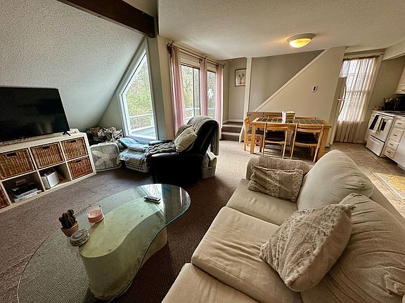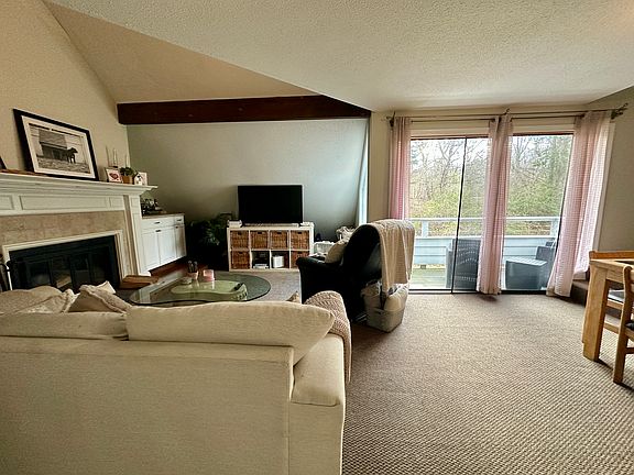 Second floor unit with private upper story deck and wood burning fireplace. Conveniently located near town and highways. Main floor has open floor plan with living room with fireplace/kitchen/eating area with cathedral ceilings. Second floor has loft/bedroom with full bath and cathedral ceilings. Laundry is located just steps from the building. Good credit and no pets/no smoking. Application and credit check required. Available for May Occupancy. Agent related to owner.