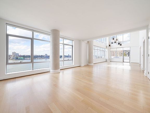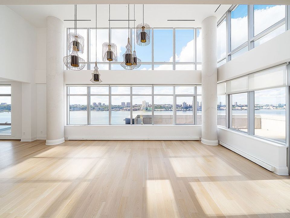 Seamlessly blending over 5,700 square feet of interior living space and a massive 4,500 square foot terrace with private pool, this extraordinary duplex corner residence at One Riverside Park offers elegant city living at its finest. Designed by Shamir Shah Design and boasting seven bedrooms and nine and a half bathrooms and with oak flooring throughout, the home offers exposures to the north, south, east, and west, with breathtaking views of the Hudson River.