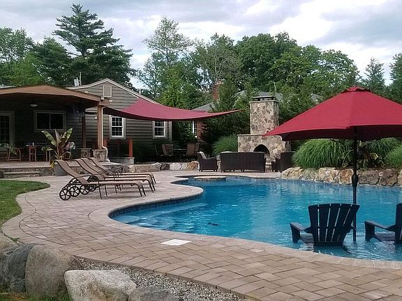 Truly unique 3 bedroom 3 bath ranch home done in rustic cozy finishes...Just 20 minutes from The GW Bridge and Manhattan in North Jersey this tranquil private setting is one of a kind...Completely renovated 6 years ago the open floor plan gives it a spacious layout while still providing plenty of privacy with the bedroom layout...Custom maple cabinets with stone finishes in the kitchen tie together throughout the rest of the house and yard....The basement walls have been bricked and compliment the wood burning stove and custom wine and bourbon bar, complete with wet bar sink and refrigerator....The resort style pool that is the centerpiece of the yard is surrounded by rock speakers, fireplace two outdoor TV's and Jacuzzi...The detached two car garage has a finished bonus room above it which is perfect for a home office or hobby room....A quiet tranquil setting awaits....