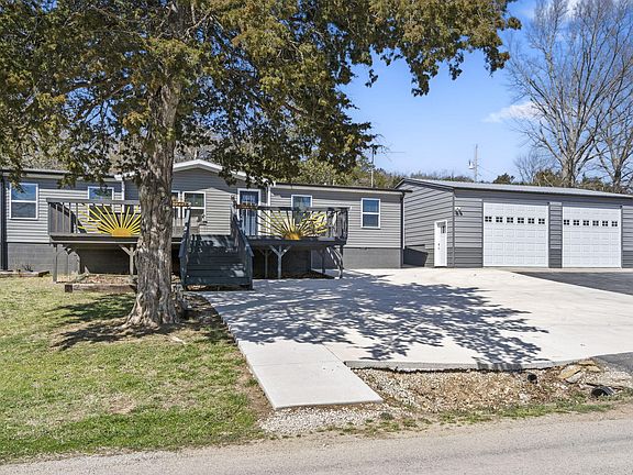 This completely remodeled, HGTV-worthy 3-bedroom, 2-bathroom manufactured home on a permanent foundation offers stunning Table Rock Lake views and high-end updates throughout. Situated on a double lot, this property is move-in ready with modern finishes and thoughtful design, making it the perfect full-time residence, vacation getaway, or investment property. Step inside to find quartz countertops, new doors, and a beautifully updated interior that feels straight out of a designer magazine. The home has undergone major renovations, including a new roof, siding, and windows in 2018, along with a new HVAC system and ductwork in 2021 for energy efficiency. A propane furnace ensures year-round comfort. For those needing storage and workspace, the massive 30x36 shop, built in 2022, features 12-foot garage doors, foam insulation, 200-amp electric service. The concrete parking area provides plenty of space, with additional room inside the shop for vehicles, boats, or recreational toys. Enjoy breathtaking lake views from the front deck, which is set to be completely redone in the coming weeks. With its modern upgrades, spacious layout, and unbeatable location near Table Rock Lake, this home is the ultimate blend of luxury, comfort, and lake life living. Third party slips available for additional $. *NO HOA - $300/year for road maintenance and water. 📞 Don't miss this HGTV-inspired dream home--schedule your private showing today!