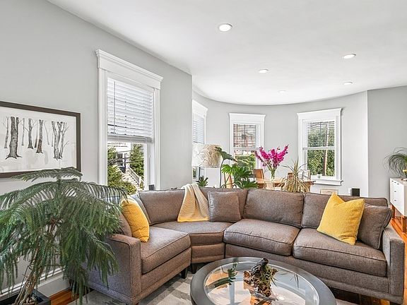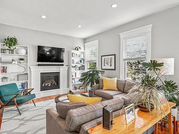 Perched atop Pope's Hill, one of Dorchester's most sought after neighborhoods, is this meticulously maintained 2 bed, 2 bath condo. Situated on the corner of a quiet street, the front stone stairway cascades to the sidewalk surrounded by a flourishing and matured landscape. Impeccable detail is evident throughout from the stained glass window, original rustic front door, and dentil trimmed exterior. Inside you'll find a sun-drenched entertaining space complete with built-in gas fireplace, open dining area, and recessed lighting. The kitchen includes white shaker cabinets, granite countertops, and stainless steel appliances. The master bedroom offers an en-suite tiled bathroom and dual closets. There are two private decks, ample and private storage in the basement as well as off street parking and a garage with additional storage possibilities. It's half a mile to the Shawmut and Fields Corner T stops and walking distance to Adams Village and Peabody Square. A must see!