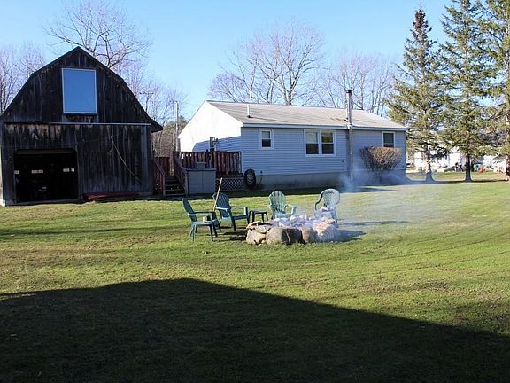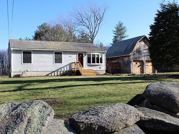 Great location in Barre Center and across from Ruggles Lane Elementary School this 3 Bedroom Ranch has a lot to offer! Set on nearly a half acre lot with a spacious yard, it's a short walk to Barre Common and the school playground is just across the street. The home is in move in condition with recent updates including a new Anderson bay window and engineered hardwood floor in the living room along with several other new windows throughout the house. The first floor bath was recently remodeled with a new tub/shower, vanity, tile floor and lighting. Additional space in the basement with a carpeted Family Room, bathroom with shower stall and a utility area with wood stove. Side deck leads to oversized two car garage/barn with stairs to a storage area above. Artesian well provides water and the home is connected to town sewerage.