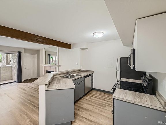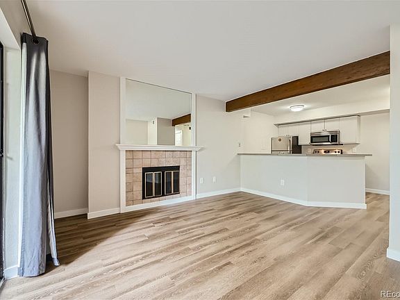 Tucked away in a quiet location, looking out over HOA green space towards residential neighborhood. Updated one bedroom condo with brand new Luxury Vinyl Plank flooring, new paint, newer furnace & A/C, tile countertops and tile surround shower with bench. Open floor plan. Spacious living room with wood burning fireplace. Patio with storage closet. The Seasons has a community pool, hot tub and well maintained grounds with mature trees. Walking distance to bus, trails, RTD park and ride station.