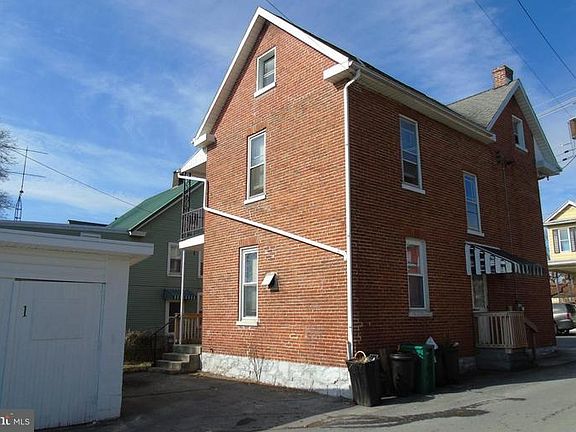 All brick colonial home with 8 garage spaces for sale in Chambersburg borough. Home is rented through Section 8 for $1000 per month. Garage spaces are 20x10 and rent for $50 each. 4 spaces are rented, 2 spaces are owner occupied, and two are vacant. 1700 square feet of living space with a fenced yard has alley access and off street parking.