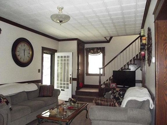 Lovely well maintained 2 story with garage and off street parking. New natural gas heating, new flooring, custom draperies, stainless steel appliances. Beautiful woodwork throughout. Large front porch.