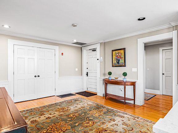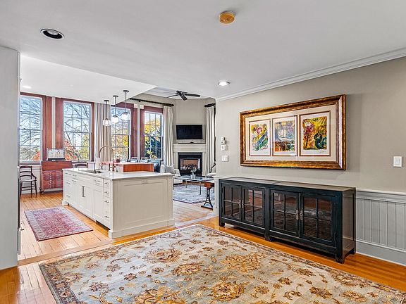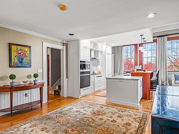 Discover this exceptional two-story townhouse in the sought-after South End of Portsmouth, just a short stroll from downtown’s vibrant restaurants and shops.Originally a 19th-century grammar school, this home features custom renovations that blend historic charm with modern luxury.Step inside to find original schoolroom hardwood floors that grace the main level. The generous foyer flows into a spacious living area with 7-foot windows and soaring 13-foot ceilings, bathed in natural light.The open kitchen invites gatherings, while the fireplaced living room and formal dining room provide elegant spaces for entertaining.The main level also includes a custom wet bar, a full bath, and primary bdrm with en-suite, with a dedicated laundry area. Ascending to the upper floors you'll find unique wrought iron railings paired with rustic wood beams and vaulted ceilings leading to a cozy loft-retreat-ideal for a home office.Reclaimed hardwood floors add warmth throughout. Generous 2nd bdrm is a true sanctuary, featuring a luxurious tiled bath, a double-sided gas fireplace and a spacious walk-in closet.Enjoy the ultra-private rooftop deck with seasonal views of the Piscataqua River, perfect for relaxation.With nearly 2,500 square feet of thoughtfully designed living space, this remarkable townhouse offers a blend of historical elegance and contemporary comfort.Ample storage throughout.Make this home a must-see.Experience Portsmouth living at its finest! No elevator. SEE non public remarks.